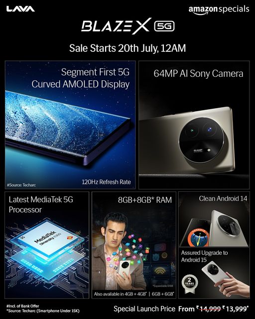 Initially available on Amazon, the Blaze X will hit offline markets a month later. The expected price for the base variant is under INR 15,000, with higher RAM configurations potentially costing more​